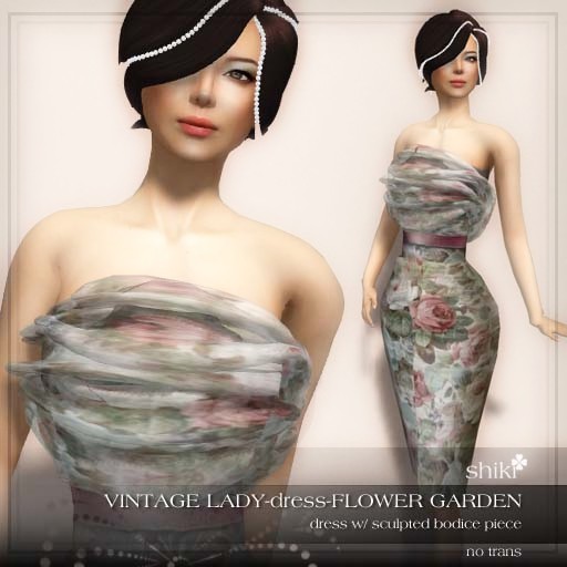 Shiki's current offering at Tropicalia Bazaar is our Kuroneko dress and at L$75 it's an amazing buy. Kuroneko is one of the most versatile outfits in my inventory. The complete set can work for a vintage look, future glam, or any thing in between. Additionally, I often use the individual components for mix & match looks.